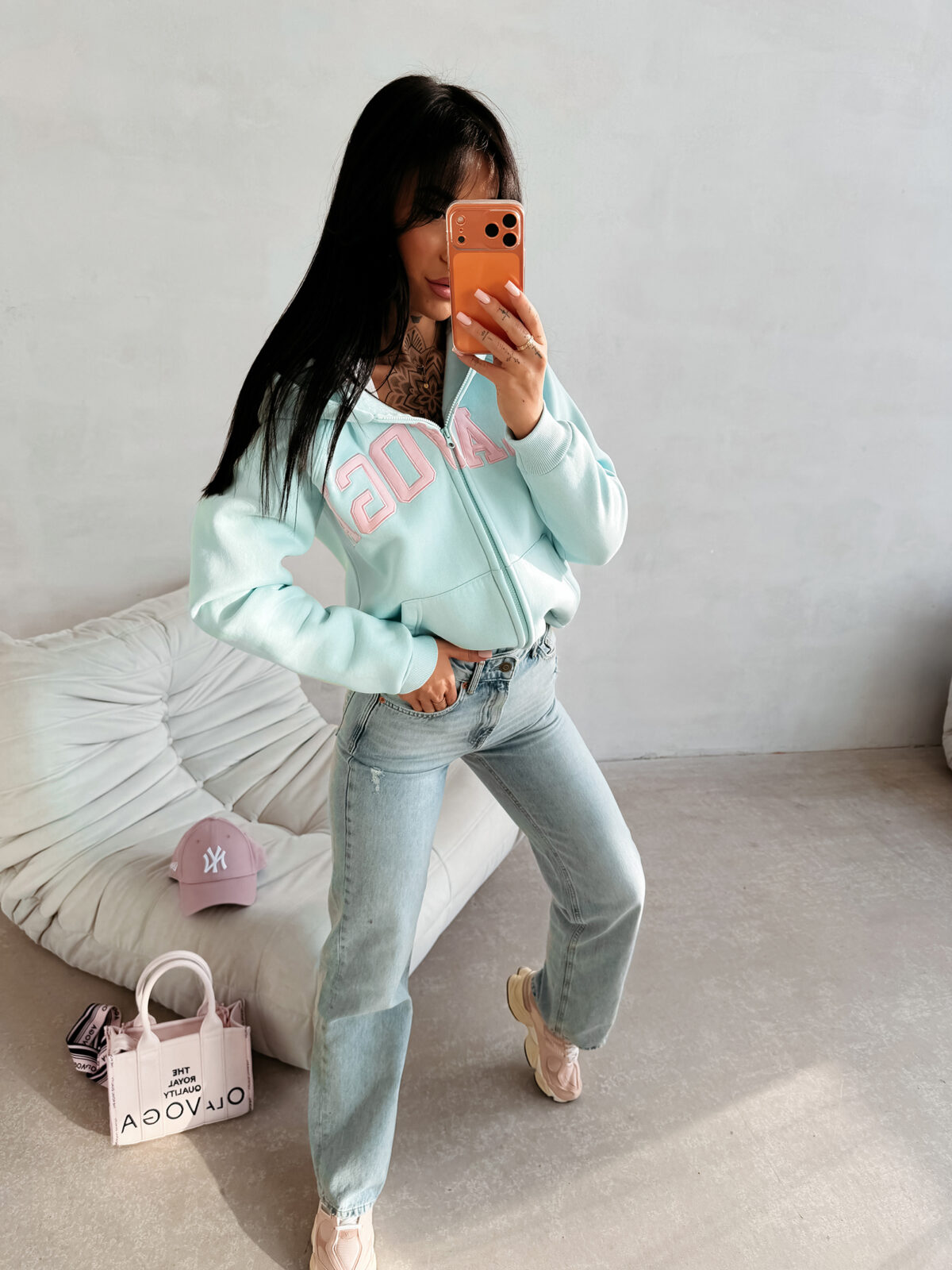 Bluza IRIS pozwala tworzyć wiele harmonijnych, stylowych zestawów. Idealnie pasuje do legginsów, prostych spodni dresowych, gładkich joggerów lub klasycznego denimu. Można zestawić ją z miękką puchową kurtką, dłuższą parką lub eleganckim płaszczem, tworząc spójny outfit w stylu premium casual.