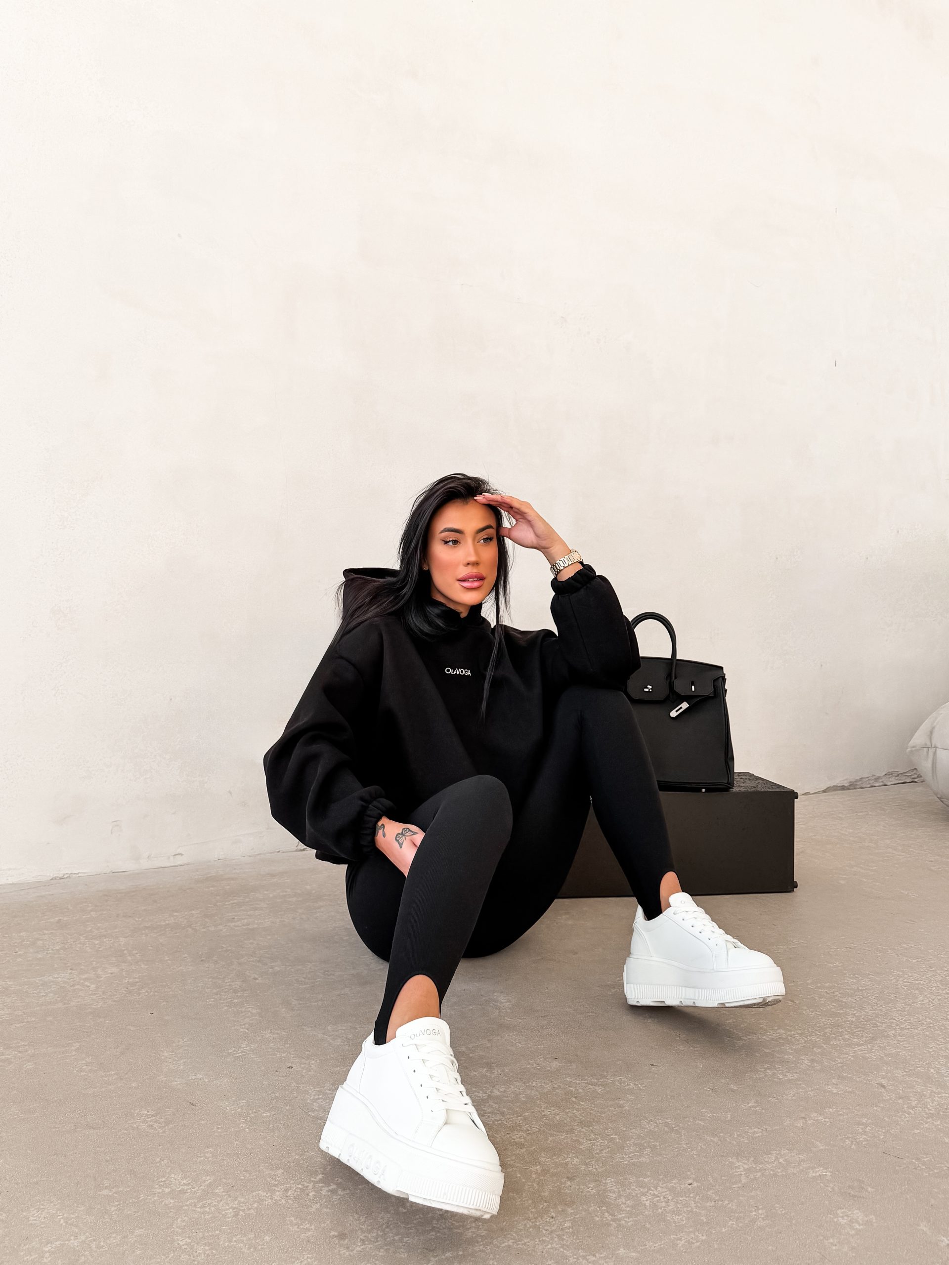 Casualowa bluza wykonana z miękkiej, przyjemnej w dotyku dzianiny o gładkiej, jednolitej strukturze. Model z kapturem o luźniejszym, komfortowym kroju. Bluza z długim rękawem, wykończonym elastycznymi ściągaczami. Dół zakończony delikatnym ściągaczem. Na przodzie haft z minimalistycznym logo marki OLAVOGA. Na plecach większe logo brandu oraz hasło essence of comfort.