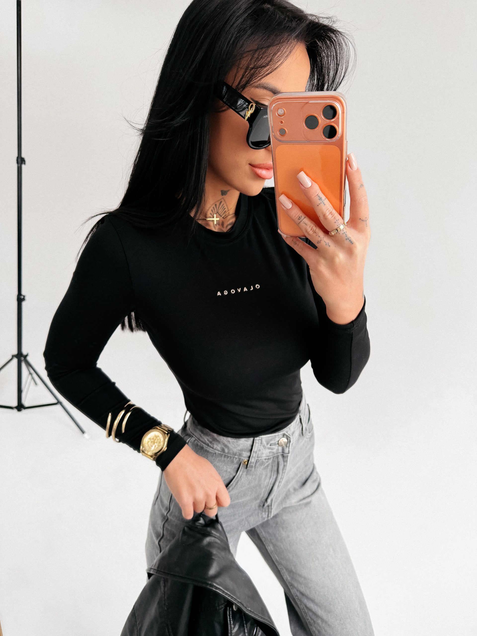 Na przodzie bluzki znajduje się haftowane logo OLAVOGA w kontrastowym kolorze.