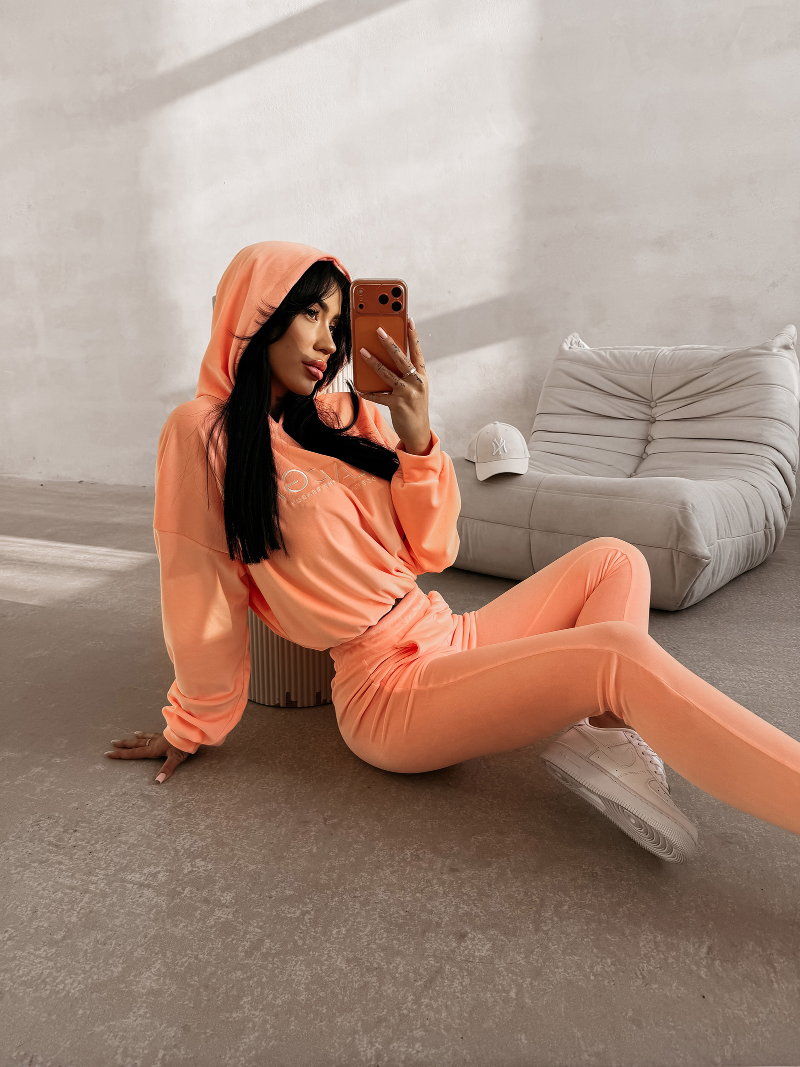 Komplet damski OLAVOGA HANDIES to idealna propozycja dla kobiet, które cenią wygodę i elegancki minimalizm w codziennych stylizacjach. Ten zestaw wykonano z miękkiego, welurowego materiału o delikatnym połysku, który otula sylwetkę i zapewnia wyjątkowy komfort. HANDIES łączy casualowy charakter z subtelną elegancją, dlatego idealnie sprawdza się w stylu lifestyle premium. To komplet, który pozwala czuć się dobrze przez cały dzień, zachowując przy tym elegancki wygląd.