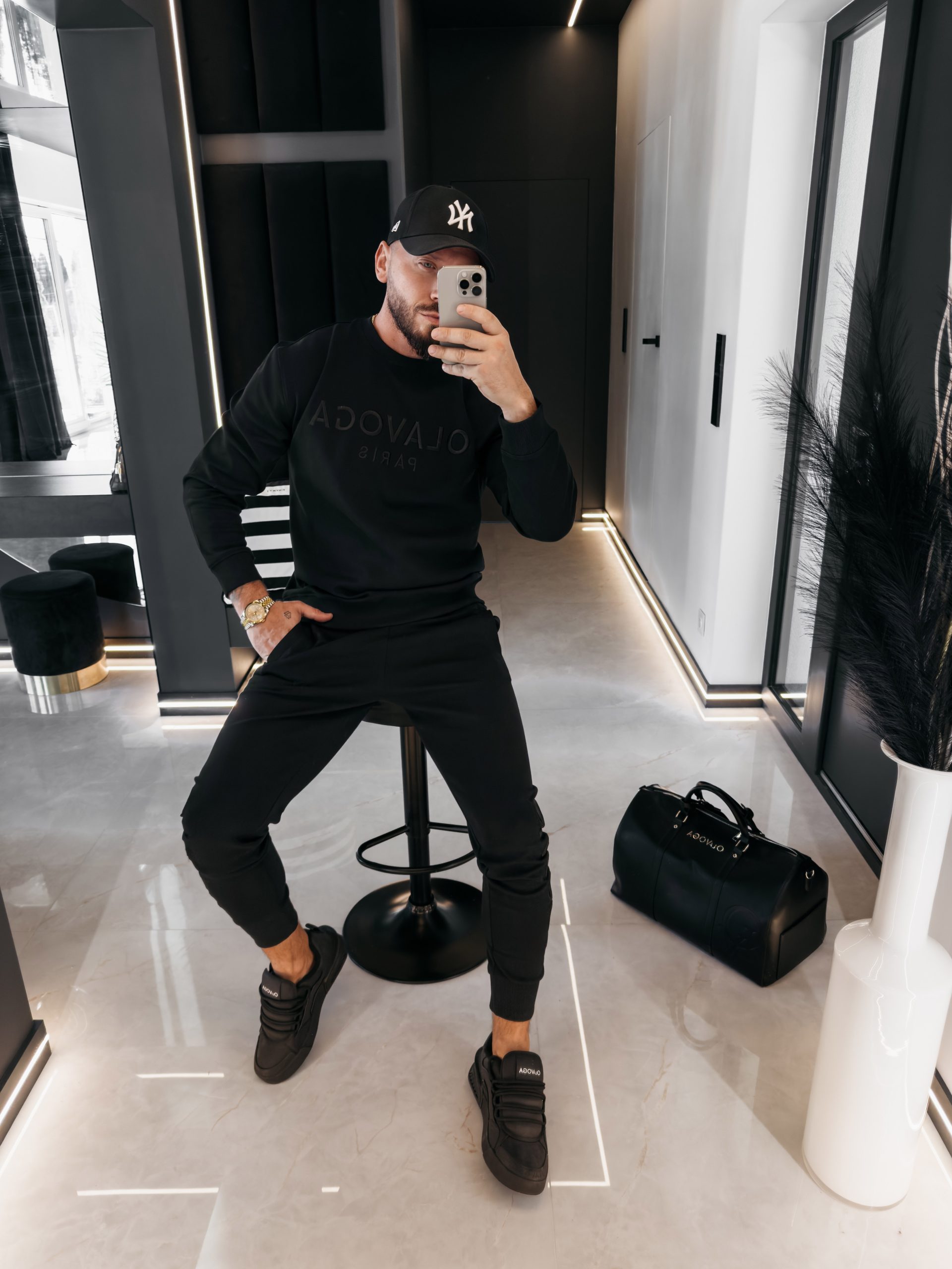 Casualowy komplet wykonany z wysokiej jakości, miękkiej i przyjemnej w dotyku dzianiny o gładkiej strukturze. Góra – bluza o klasycznym kroju z okrągłym dekoltem. Model z długim rękawem wykończonym elastycznymi ściągaczami oraz ściągaczem u dołu. Na przodzie efektowny, wypukły haft z logo OLAVOGA PARIS. Dół – spodnie o dopasowanym fasonie z elastycznym pasem oraz nogawkami zakończonymi ściągaczami. Model wyposażony w praktyczne kieszenie po bokach. Na nogawce przestrzenne, haftowane logo marki OLAVOGA.