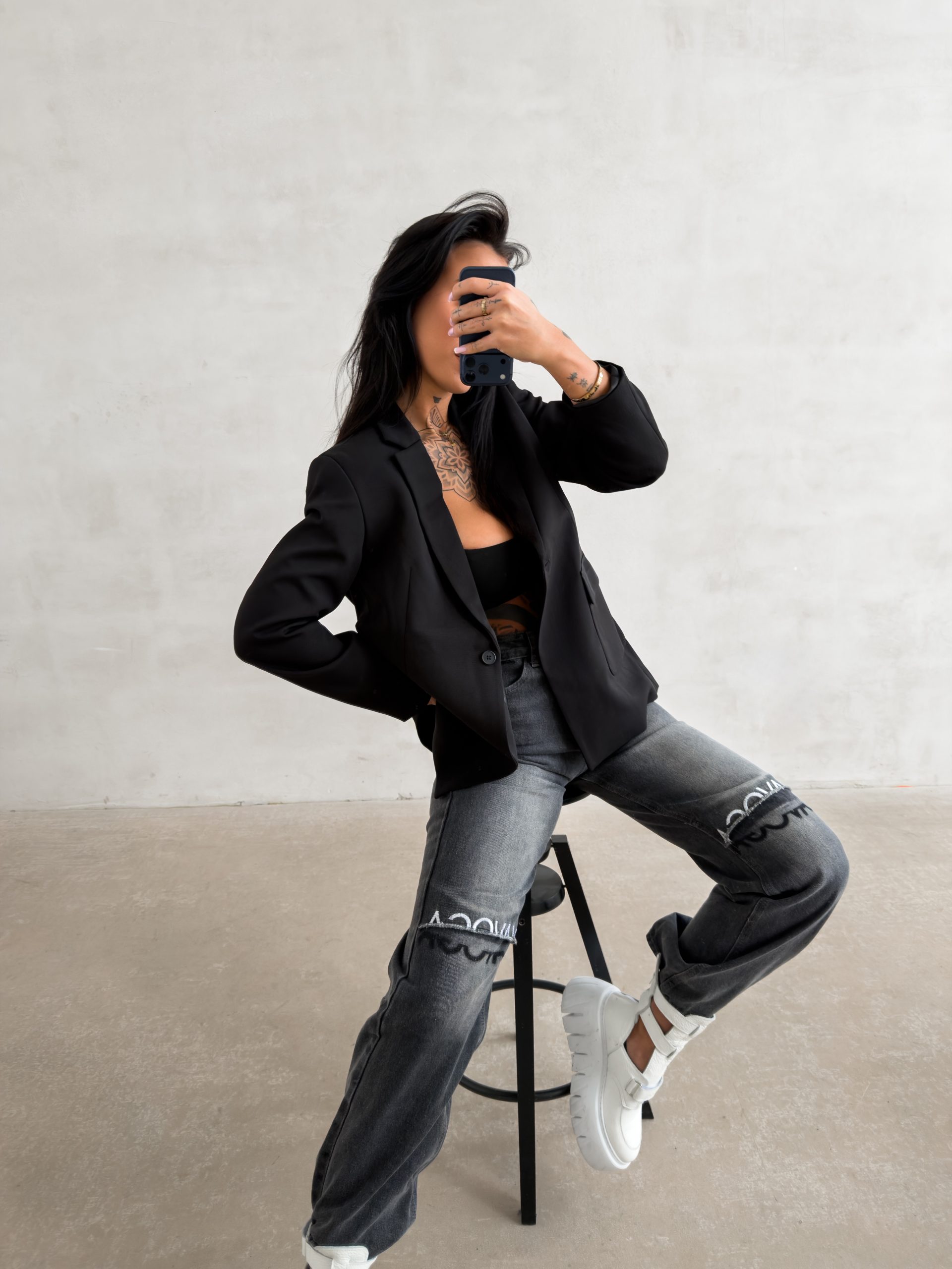 Klasyczna marynarka o lekko oversize’owym kroju, wykonana z wysokiej jakości, gładkiej tkaniny o eleganckim wykończeniu. Model zapinany na jeden guzik, z klasycznym kołnierzem i klapami oraz kieszeniami z patkami. Tył zdobi efektowny, wypukły haft z logo marki OLAVOGA oraz napisem LUXURY.